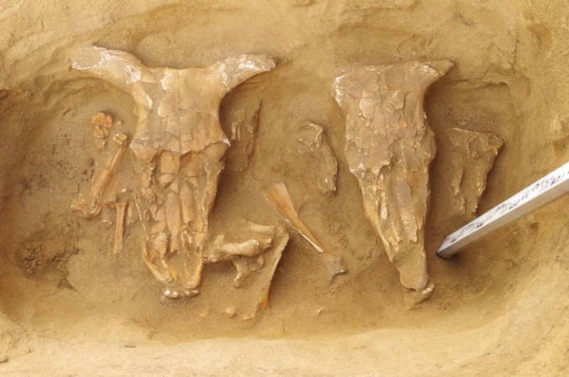 Ещё одно необычное захоронение археологи ЧелГУ обнаружили в последние дни экспедиции. Во время раскопок рва укреплённого поселения Степное были найдены останки женщины с младенцем. Как отмечают учёные, это нетипичное место для погребения. Теперь им предстоит выяснить, что оно означает и как связано с найденным ранее здесь захоронением младенца, поскольку обнаружить на одном небольшом участке поселения вне жилищ такое количество человеческих останков – случай уникальный.